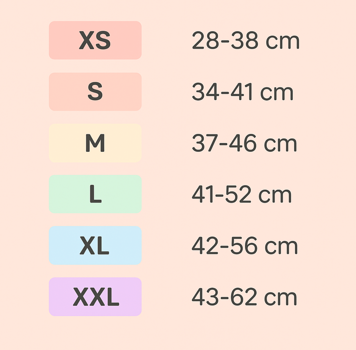 XS (Extra Small): Neck 28–38 cm